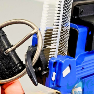 Cách sử dụng: Gắn dây treo tag bằng nhựa (V-Fasteners) chỉ với 2 thao tác: luồn kim và bóp dụng cụ bằng tay.